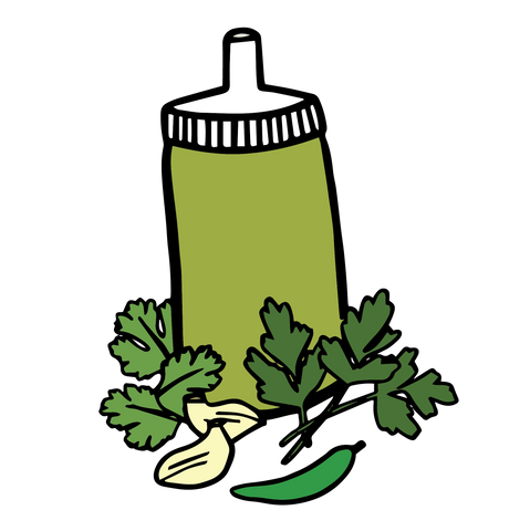 To expand on the playful logo illustration, I drew up some illustrations of my own to showcase each of the patty flavors & sauces.